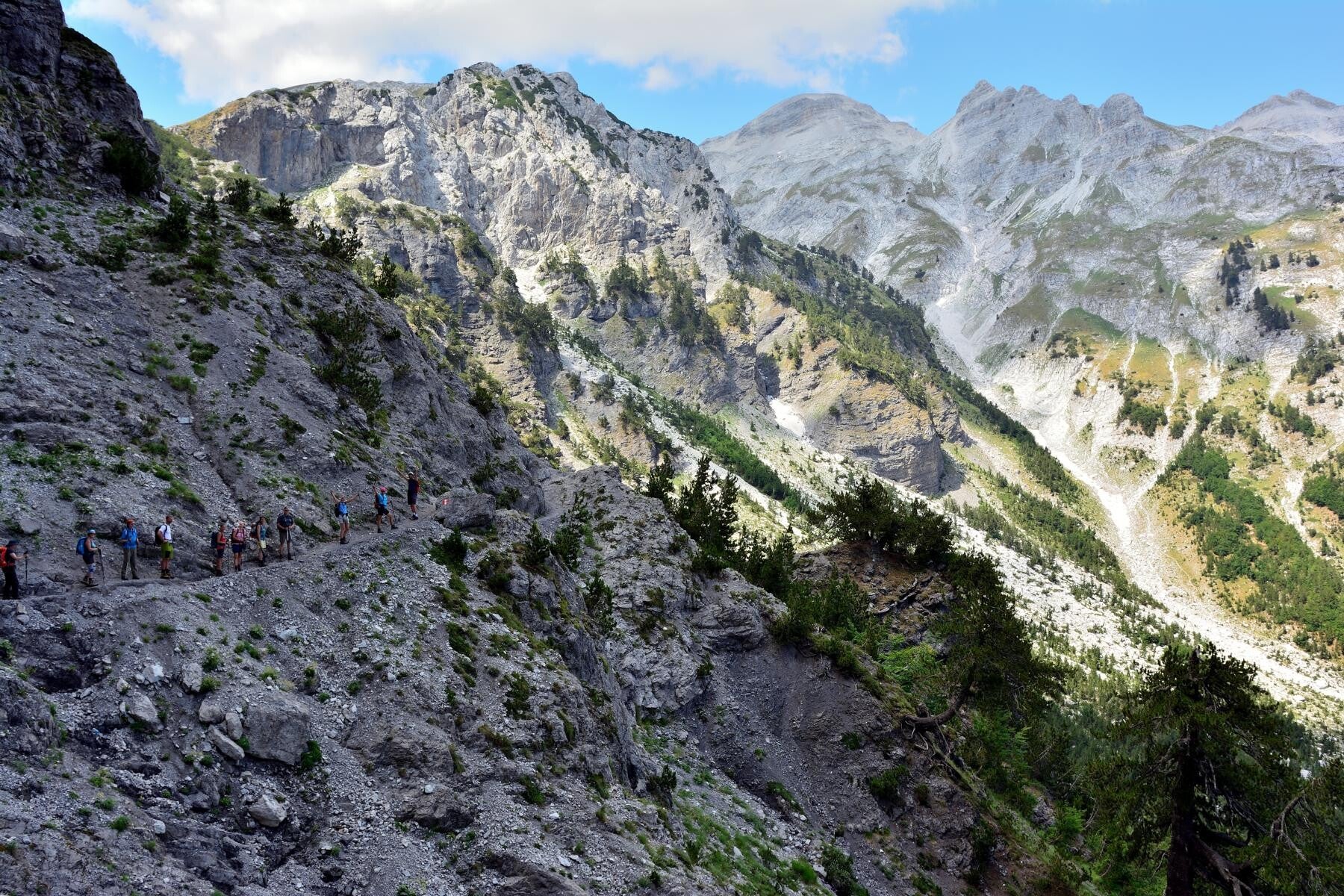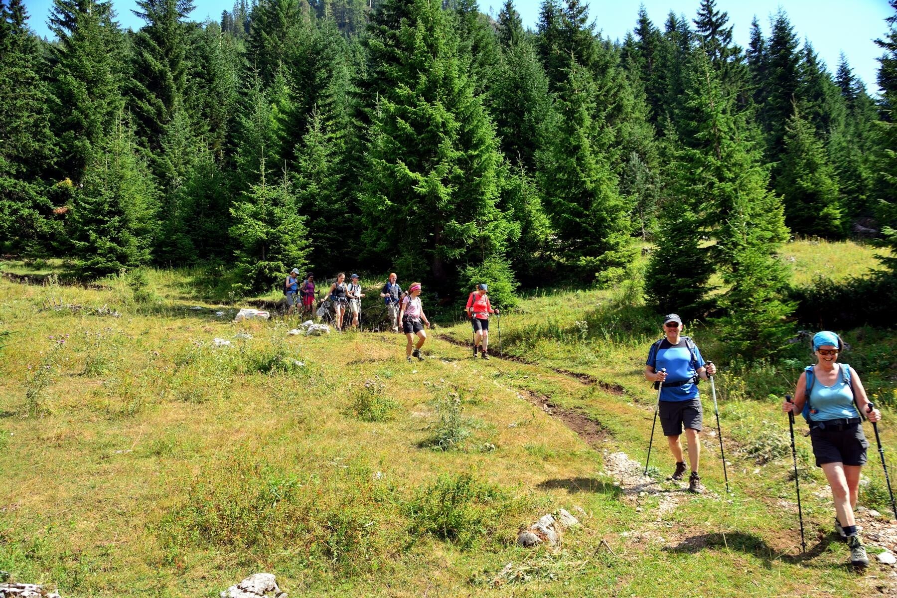 This hiking tour is rated challenging for beginners and moderate for experienced hikers. Participants should be in good physical condition, as the route involves sustained walking across mountainous terrain with significant elevation changes. The trail passes through a diverse and spectacular alpine landscape, featuring steep ascents and descents, deep valleys shaped by mountain rivers, rugged rocky peaks, and stretches of hardy mountain pine forest. Despite the dramatic scenery, the selected routes are generally stable and reliable underfoot, offering a well‑balanced combination of challenge and safety.