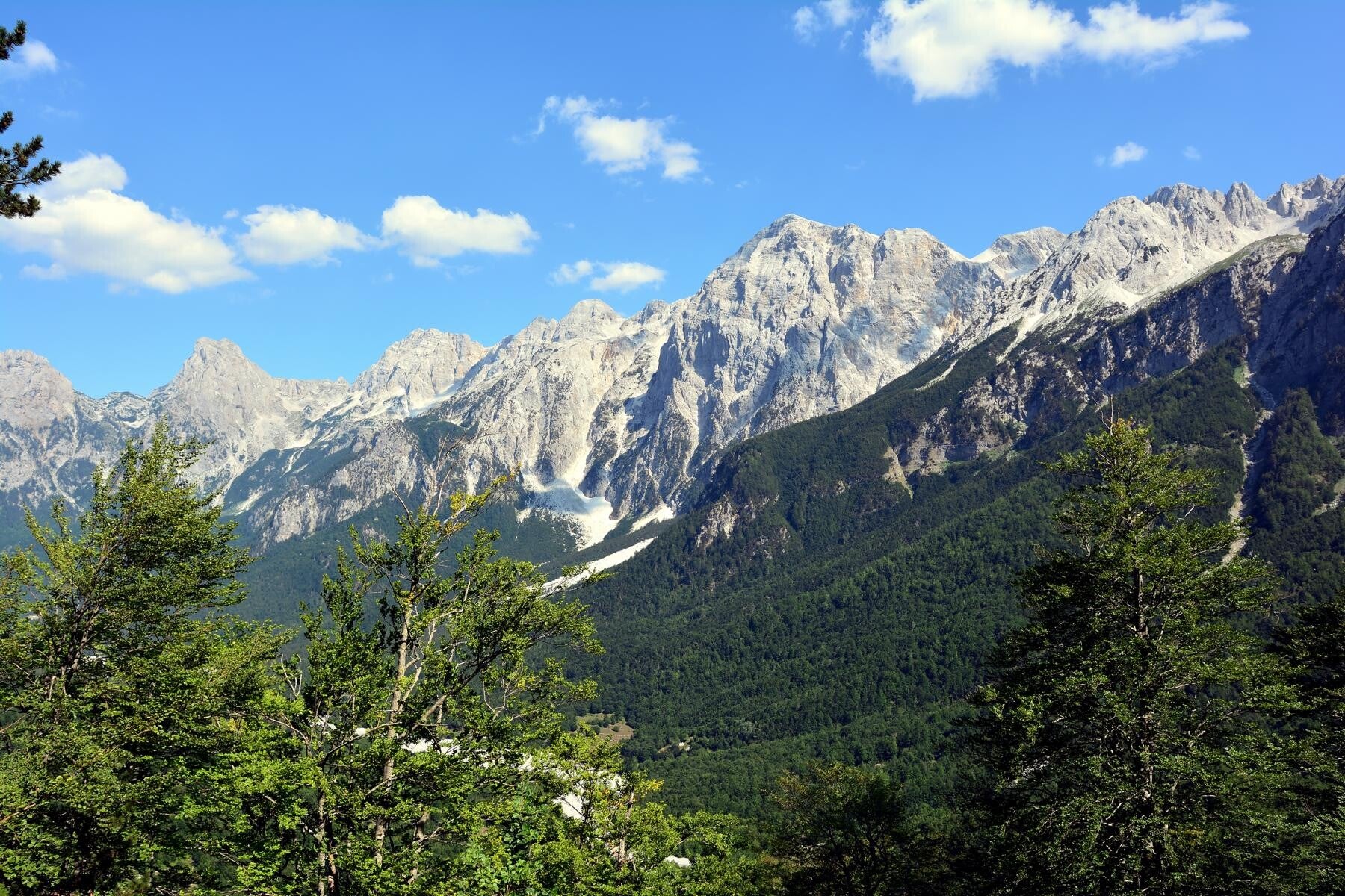 Short but occasionally intense thunderstorms can occur, typically lasting 30–45 minutes. Extended periods of continuous rain are uncommon, as less than 10% of the annual precipitation falls during the summer months. Snowfields may still be present in shaded areas until mid-June. In contrast, July and August can be quite hot in lowland cities such as Shkodra and Tirana, so lightweight clothing and sun protection are essential. If traveling before June or after mid-September, be prepared for cooler conditions by packing warm layers and a three-season sleeping bag. From late September onward, rainfall and fog become more frequent, daylight hours shorten, and nighttime temperatures drop significantly.